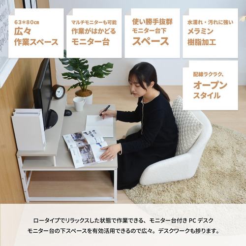 B.Bファニシング Noko ローデスク 幅80×奥行65×高さ45cm 広々作業スペース ライトグレー NKDK0264MOLGY