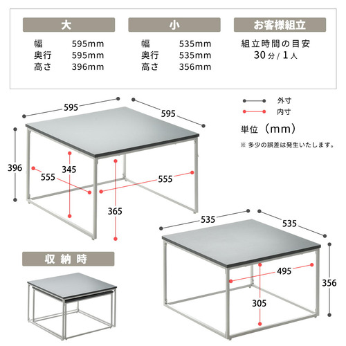 商品サイズ:W大:595/小:535×D大:595/小:535×H大:396/小:356mm