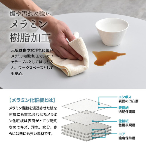 メラミン天板だから、汚れや水濡れにも強く、様々なシーンで対応可能です。