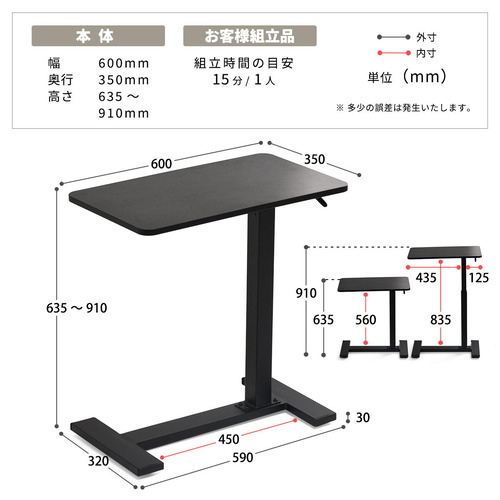 B.Bファニシング 昇降サイドテーブル TaB 幅60×奥行35×高さ63.5〜91cm 耐荷重10kg ブラック ONST0292MOBLK