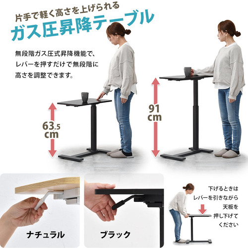 無段階ガス圧式昇降機能で、高さを自由に調節できます。