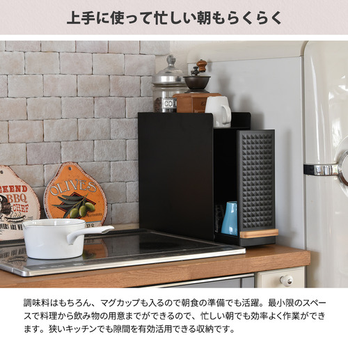 B.Bファニシング TREE スライド収納調味料ラック コンパクトタイプ 幅12×奥行42×高さ34.5cm 生活感を隠す ブラック TRKS0296KIBLK