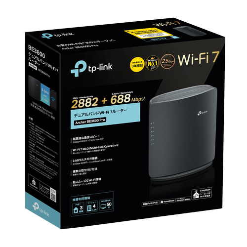 TP-Link Archer BE3600 Pro Wi-Fi 7 無線LANルーター 2882+688Mbps BE3600 2.5ギガWAN&LANポート EasyMesh対応 IPv6対応 ブラック