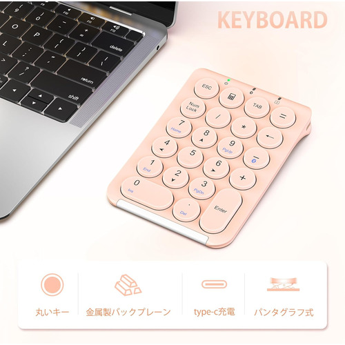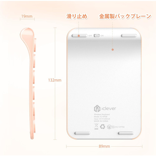 iClever ICKP08PI ワイヤレステンキー Bluetoorh対応 エルゴノミクスデザイン Windowsv Mac対応 ピンク