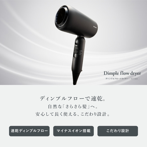マイナスイオンがヘアドライ時の髪の静電気を抑制しキューティクルを保護。紫外線ダメージからも髪をまもり、速乾ディンプフローとともに指通りの良い髪へと導きます。