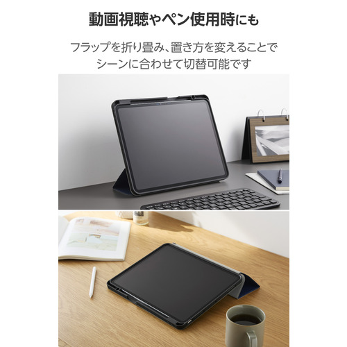 エレコム TB-A25PLSANV iPad Pro ケース 13インチ ( M4 ) カバー Apple Pencil収納 フリーアングル スタンド 衝撃吸収 ネイビー