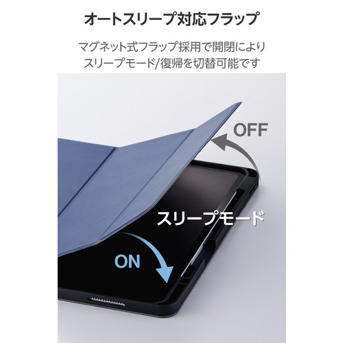 ●持ち歩き時に画面を保護するフラップ付きです。フラップを閉じるとスリープモードになり、開けるとスリープから復帰します。