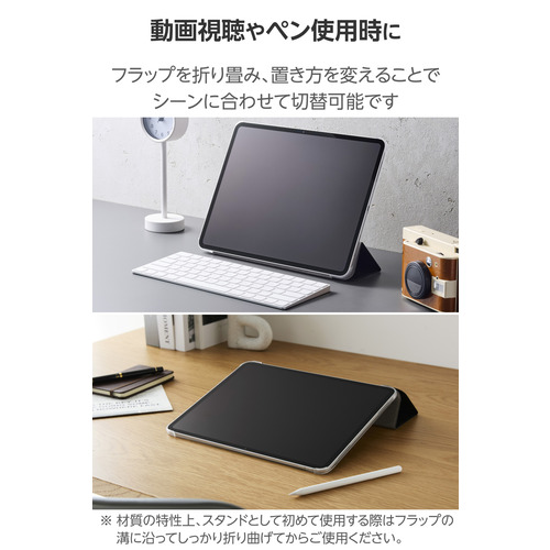 ●※開封後スタンドとして初めて使用する際は、フラップの溝に沿ってしっかり折り曲げてからご使用ください。材質の特性上、タブレットを立てにくい場合があります。