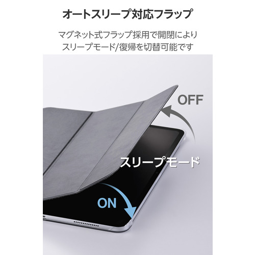 ●持ち歩き時に画面を保護するフラップ付きです。フラップを閉じるとスリープモードになり、開けるとスリープから復帰します。