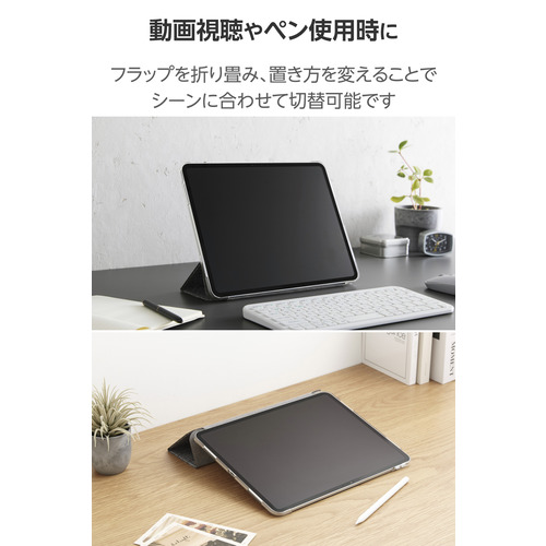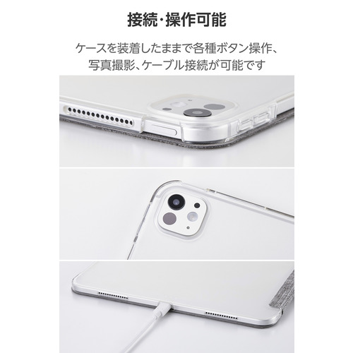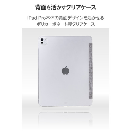 エレコム TB-A25PLWVCGY iPad Pro ケース 13インチ ( M4 ) ファブリックフラップ カバー 2アングル スタンド 軽量 薄型 背面クリア グレー