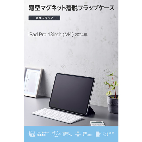 エレコム TB-A25PLWVPF2BK iPad Pro ケース 13インチ ( M4 ) マグネット着脱フラップ カバー 2アングル スタンド 軽量 薄型 ブラック