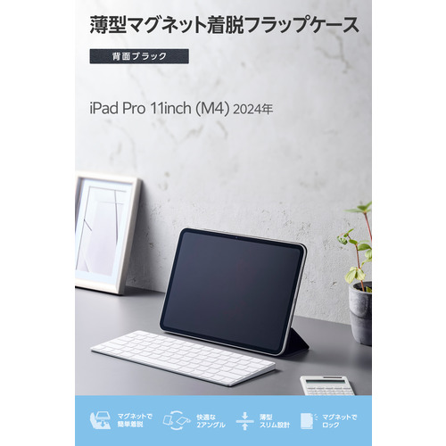 エレコム TB-A25PMWVPF2BK iPad Pro ケース 11インチ ( M4 ) マグネット着脱フラップ カバー 2アングル スタンド ブラック