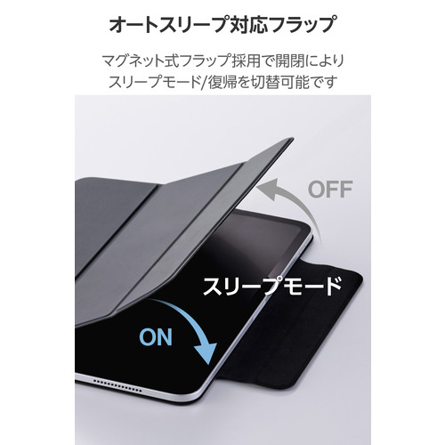 ●持ち歩き時に画面を保護するフラップ付きです。フラップを閉じるとスリープモードになり、開けるとスリープから復帰します。
