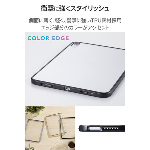 ●エッジ部分のカラーがアクセントとなる軽く、衝撃に強いクリアケースです。側面に弾力性のあるTPU素材を、背面に指紋が付きにくいポリカーボネート素材を使用しました。