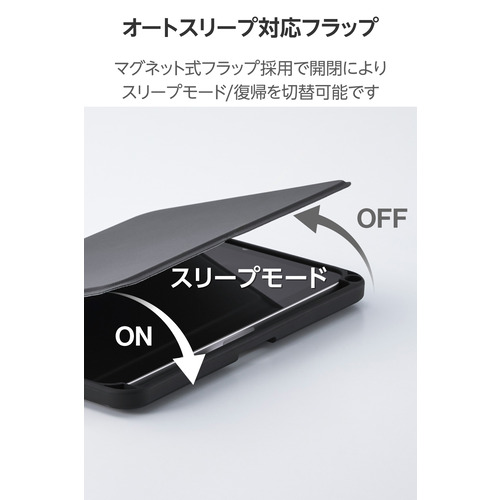 ●持ち歩き時に画面を保護するフラップ付きです。フラップを閉じるとスリープモードになり、開けるとスリープから復帰します。