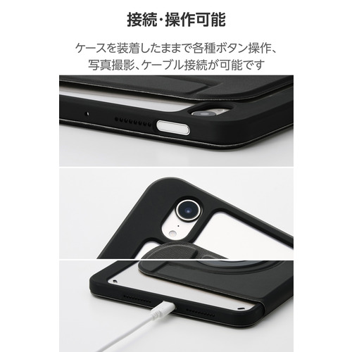 エレコム TB-A25SMG360BK iPad mini ケース 8.3インチ ( A17 Pro ) / 第6世代 マグネット着脱フラップ カバー 360度回転 ブラック