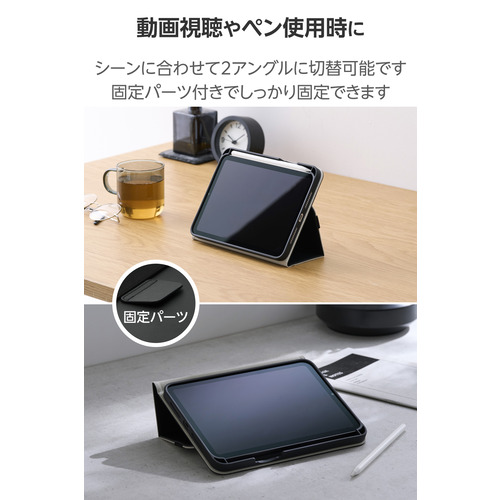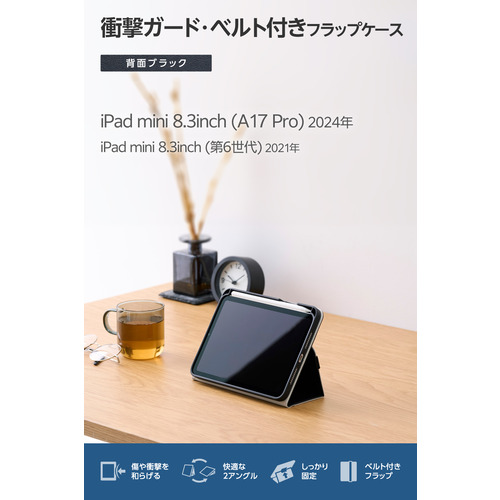 エレコム TB-A25SPLF2BK iPad mini ケース 8.3インチ ( A17 Pro ) / 第6世代 ベルト付きフラップ カバー 2アングル スタンド ブラック