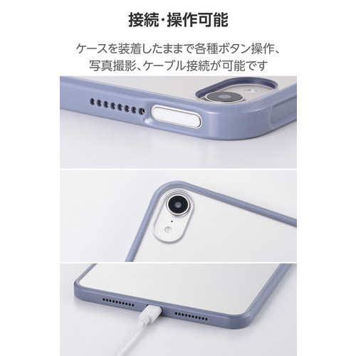 ●エッジ部分のカラーがアクセントとなる軽く、衝撃に強いクリアケースです。側面に弾力性のあるTPU素材を、背面に指紋が付きにくいポリカーボネート素材を使用しました。