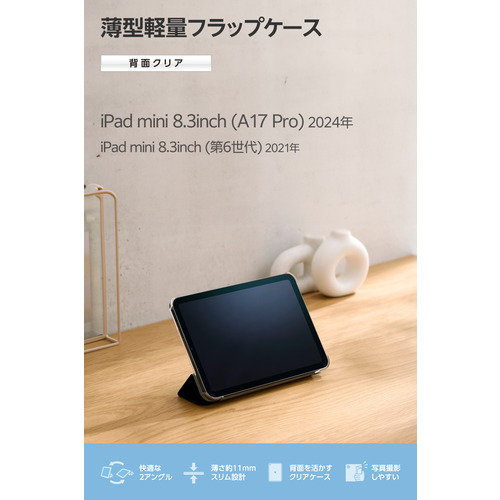 エレコム TB-A25SWVBK iPad mini ケース 8.3インチ ( A17 Pro ) / 第6世代 カバー 2アングル スタンド 背面クリア ブラック