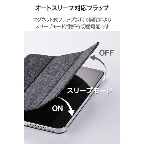 ●持ち歩き時に画面を保護するフラップ付きです。フラップを閉じるとスリープモードになり、開けるとスリープから復帰します。