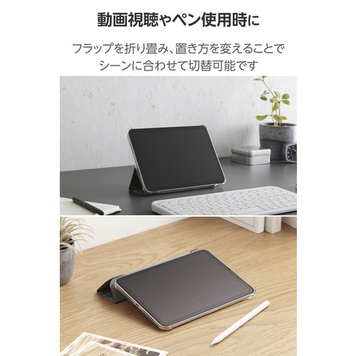 エレコム TB-A25SWVCGY iPad mini ケース 8.3インチ ( A17 Pro ) / 第6世代 カバー 2アングル グレー