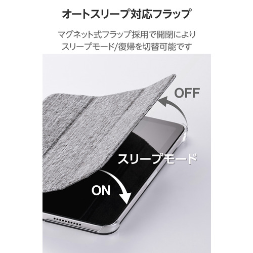 ●持ち歩き時に画面を保護するフラップ付きです。フラップを閉じるとスリープモードになり、開けるとスリープから復帰します。