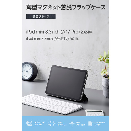エレコム TB-A25SWVPF2BK iPad mini ケース 8.3インチ ( A17 Pro ) / 第6世代 マグネット着脱フラップ 2アングル ブラック