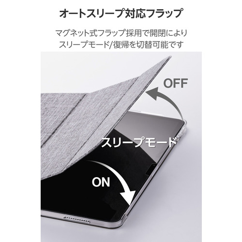 エレコム TB-A25XWVCGY iPad Air ケース 13インチ ( M3 / M2 ) マグネット式ファブリックフラップ 2アングル グレー