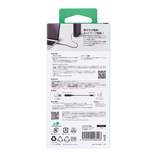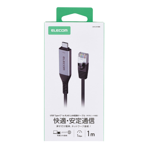 エレコム LD-CL1G10BK USB Type-C 有線LAN変換ケーブル 1Gbps対応 1m Gigabit イーサネット ブラック