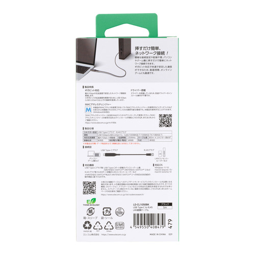 エレコム LD-CL1G50BK USB Type-C 有線LAN変換ケーブル 1Gbps対応 5m Gigabit イーサネット ブラック