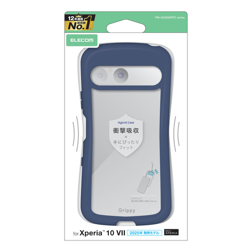 エレコム PM-X252GRPFCNV Xperia 10 VII ( SO-52F ) ケース ハイブリッド カバー 衝撃吸収 ストラップホール付 Grippy ネイビー