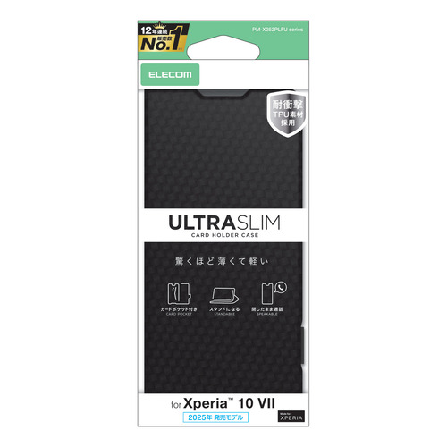 エレコム PM-X252PLFUCB Xperia 10 VII ( SO-52F ) ケース 手帳型 カバー マグネット フラップ 超スタンド機能付 ULTRASLIM カーボンブラック