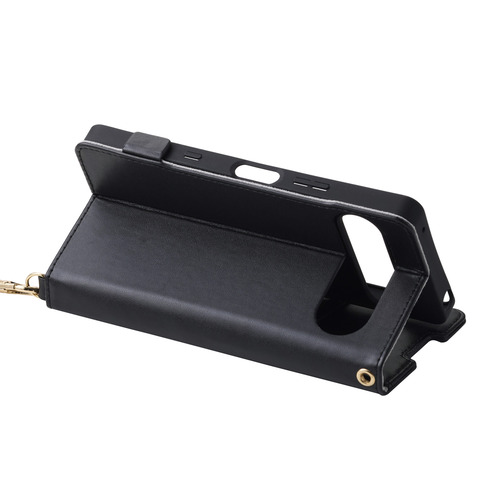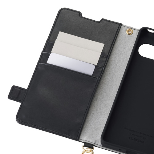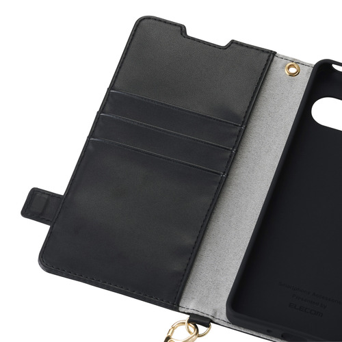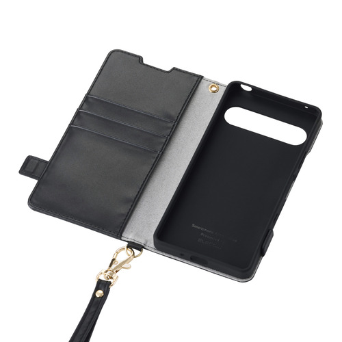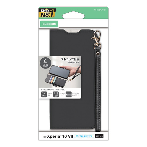 エレコム PM-X252PLFY4BK Xperia 10 VII ( SO-52F ) ケース 手帳型 カバー マグネット フラップ スタンド機能付 ハンドストラップ付 ブラック