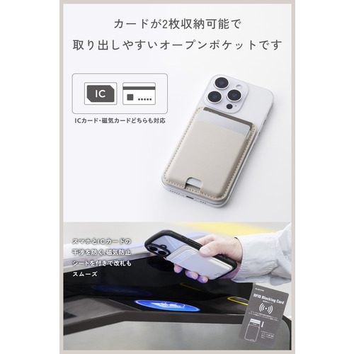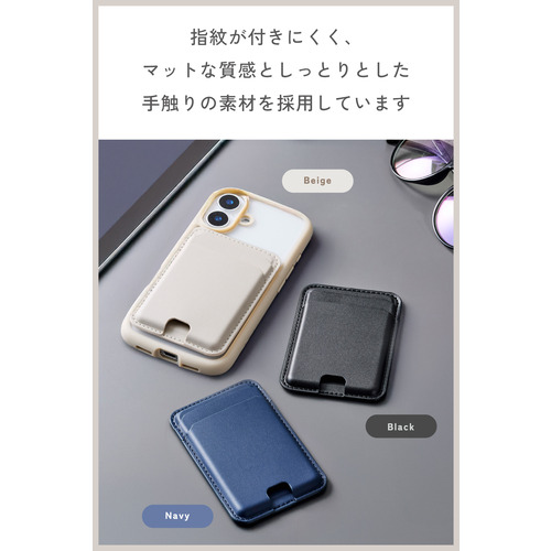 エレコム AMS-MAGCDBG MagSafe カードケース iPhone用 2枚収納 レザー風 MAGKEEP ベージュ