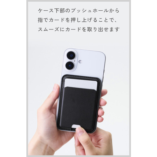 エレコム AMS-MAGCDBK MagSafe カードケース iPhone用 2枚収納 レザー風 MAGKEEP ブラック
