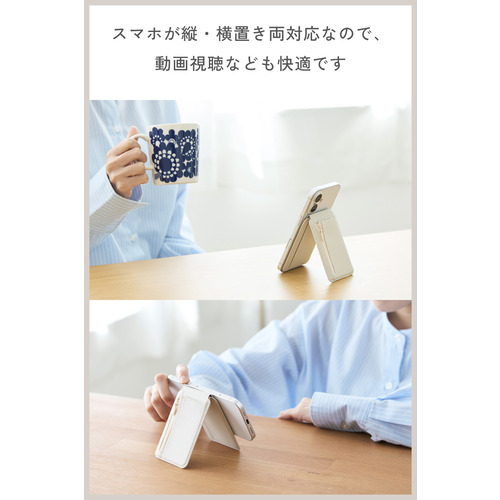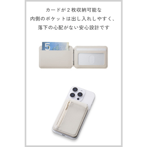 エレコム AMS-MAGCWSBG MagSafe カードウォレット スタンド iPhone用 磁気防止シート付 2枚収納+小銭ポケットベージュ