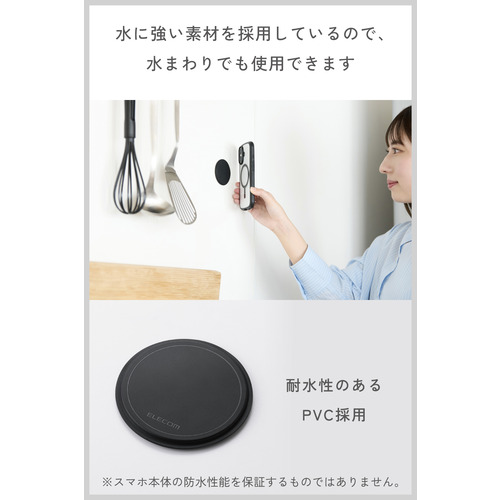 エレコム AMS-WMAGPDBK 強力マグネットパッド 壁掛け スマホホルダー MagSafe iPhone専用 水回り対応 360度調整 ブラック
