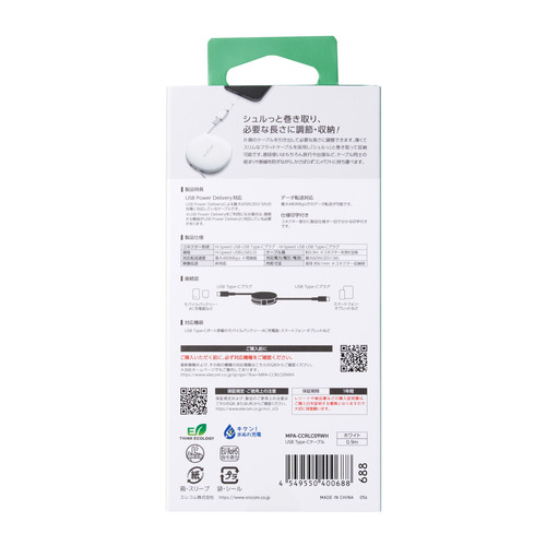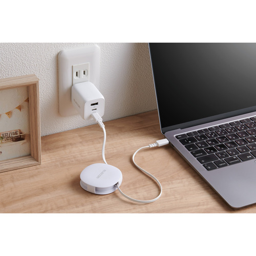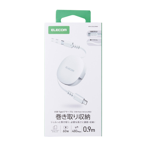 エレコム MPA-CCRLC09WH 巻き取り式 充電ケーブル USB-C to USB-C 90cm PD60W データ転送対応 ホワイト
