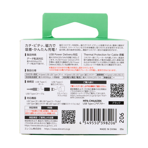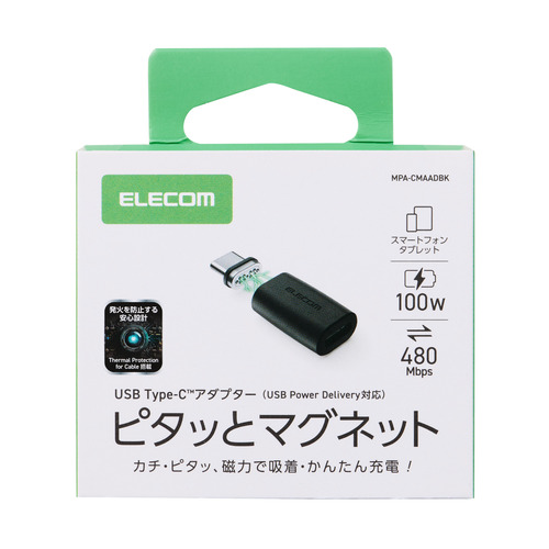 エレコム MPA-CMAADBK USB-C マグネット 変換アダプタ 100W PD対応 着脱式コネクタ ブレーカー内蔵 ブラック