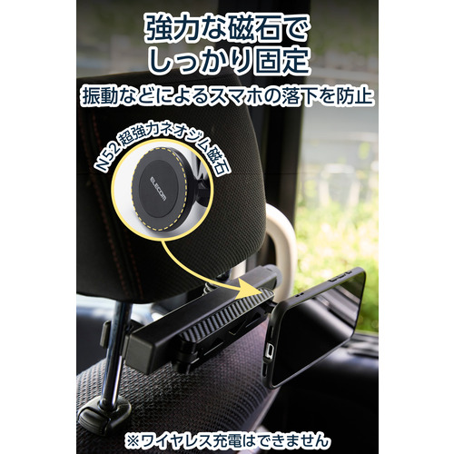 エレコム P-CARS17BK スマホホルダー 車 後部座席用 MagSafe対応 強力N52磁石 全機種対応 携帯スタンド ブラック