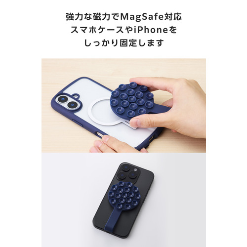 エレコム P-TKPTMAGB01NV スマホホルダー 吸盤 MagSafe対応 iPhone用 落下防止バンド付 コンパクト TakoPita ネイビー