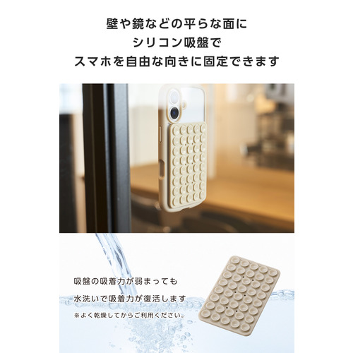 ●日常の“ながらスマホ”をより便利に!壁や鏡、窓ガラスなどの平らな面に、タコの吸盤のようにピタッと吸着する“TakoPita”スマホパッドです。MagSafe非対応のスマートフォンやケースにも対応し、両手を使わずに画面操作や動画視聴ができます。