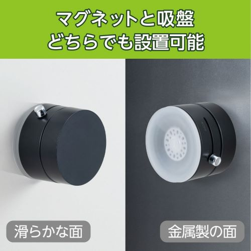 滑らかな面には吸盤、金属製の面にはマグネットで設置できます。様々な状況に合わせて使用可能です。