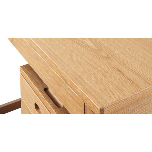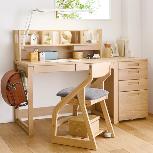 様々なアイテムから必要なものを自由に組み合わせができるシンプルなデスクシリーズです。天板に高級感のあるナラ材を使用し、シンプルで大人になっても使い続けたいデザインに仕上げました。