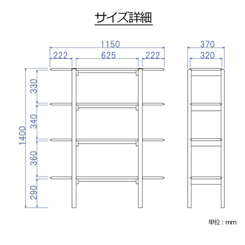 サイズ(単位:mm):幅1150x奥行370x高さ1400