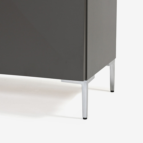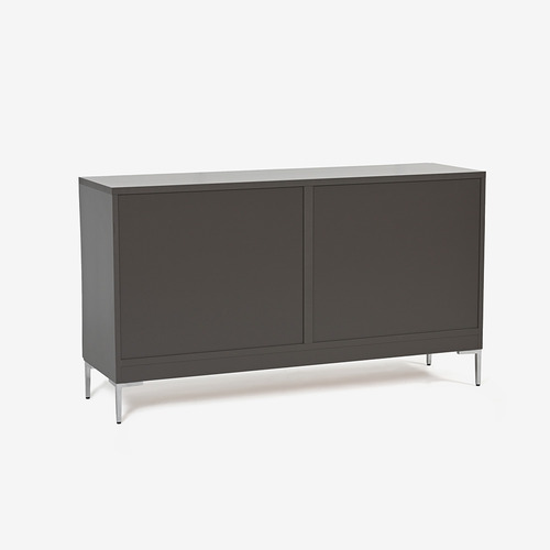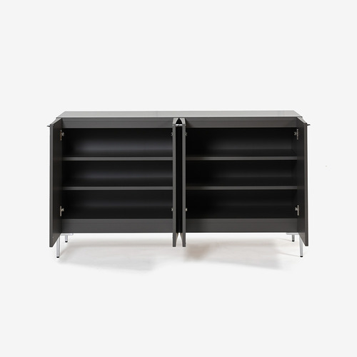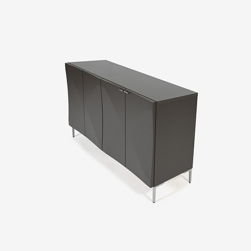 立体加工による「X(エックス)」のラインの陰影と金属パーツがモダンでグラフィカルな印象のサイドボード。表面はウレタンエナメル塗装によるマットな仕上げです。