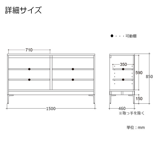 サイズ(単位:mm):幅1500x奥行460x高さ850
