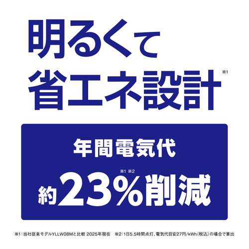 ●省エネ設計で明るい ※当社モデルYLLW08Mと比較