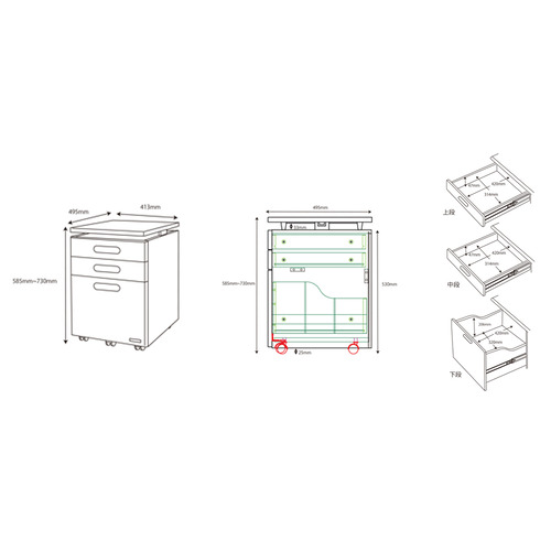 サイズ(単位:mm):幅413x奥行495x高さ585〜730