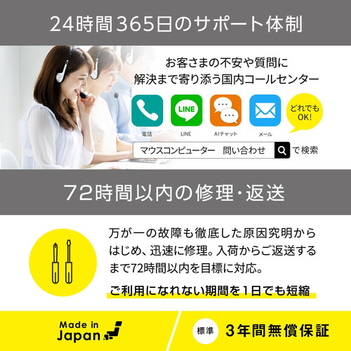安心の国内生産・ご購入から 3年間の無償修理保証